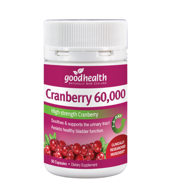 Good Health Cranberry 60,000 is a high strength formula that contains scientifically researched Cranberry extract to help support and maintain urinary tract and bladder health.