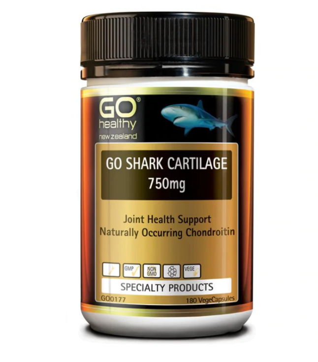 GO SHARK CARTILAGE 750mg comprises 100% premium New Zealand deep-sea shark. It aids in promoting joint comfort and supporting immune function. This supplement naturally contains Chondroitin, which is a fundamental component of joint tissue and cartilage.