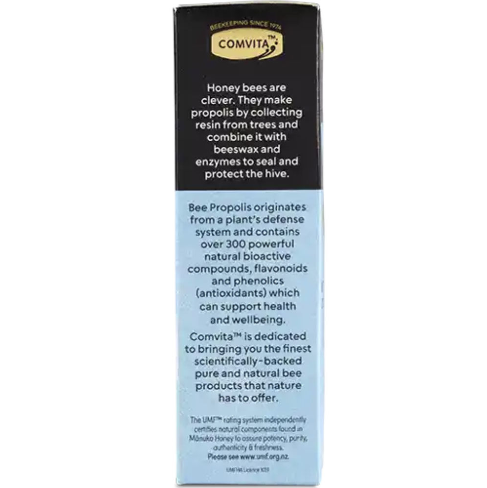 Bee Propolis originates from a plant's defense system and contains over 300 powerful natural bioactive compounds, flavonoids and phenolics (antioxidants) which can support health and wellbeing.