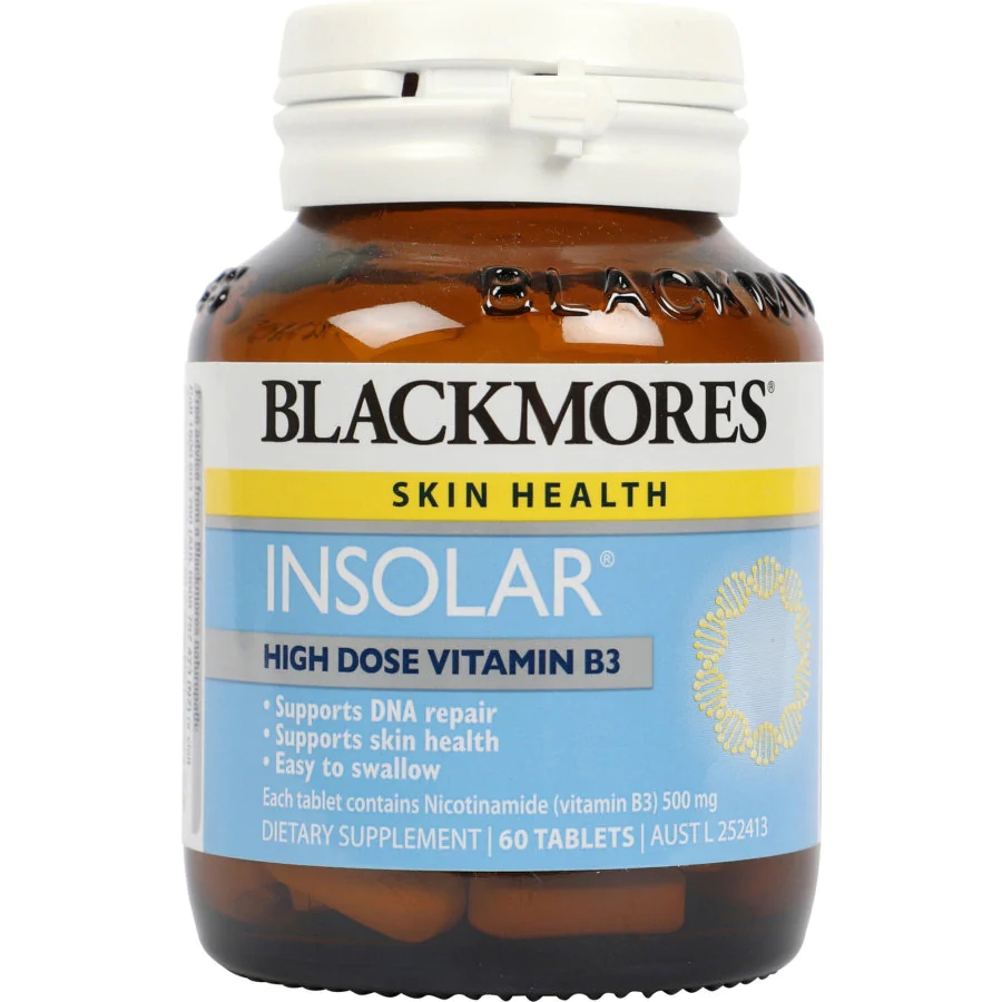 BLACKMORES INSOLAR® is one-a-day, high dose vitamin B3 formula, to support skin integrity and skin health. BLACKMORES INSOLAR® contains vitamin B3 in the nicotinamide form. Nicotinamide helps support skin health and DNA repair.