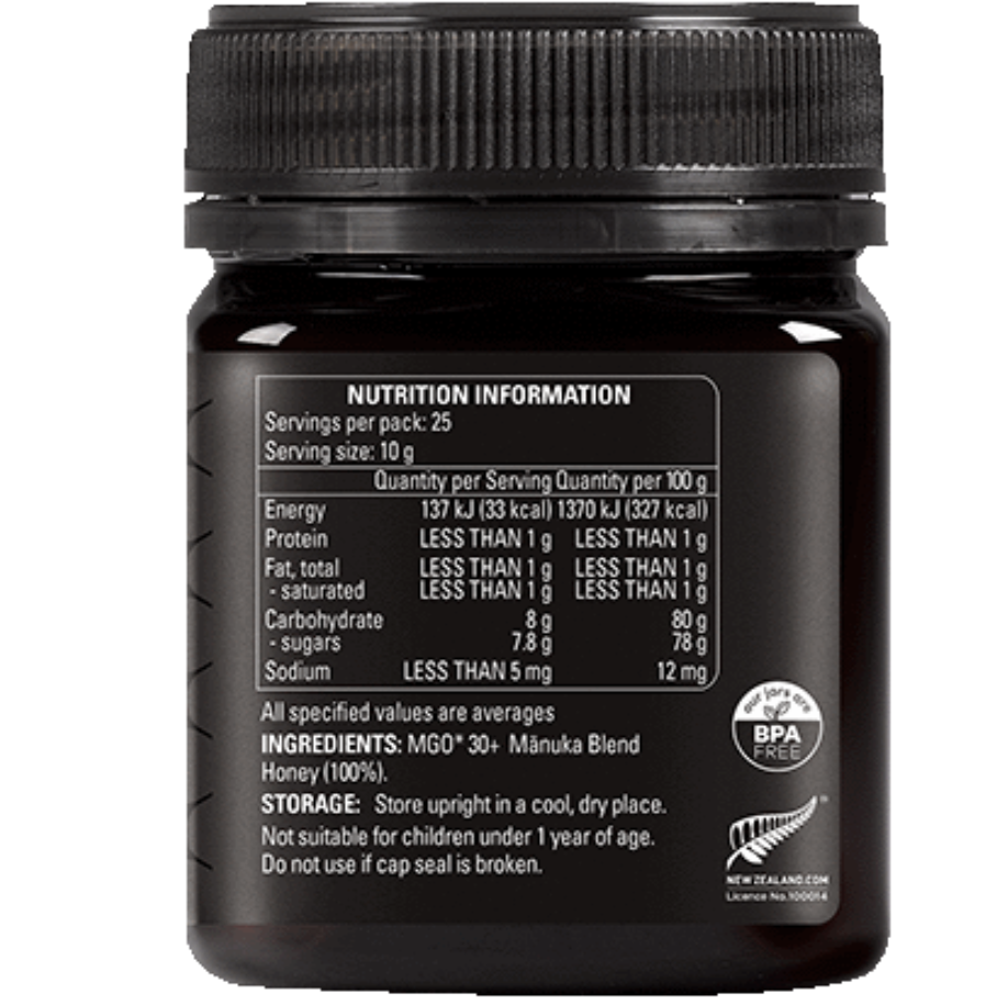 New Zealand Mānuka blend honey 30+ is a great choice for everyday honey, as it is easy to spread. You can get the perfect consistency by warming it up or chilling it in the fridge, Not suitable for children under one year of age. Do not use it if the cap seal is broken.