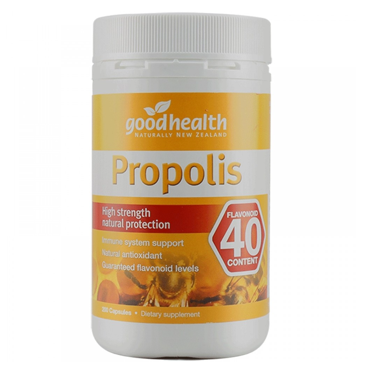 Propolis 40 is high strength propolis and contains a guaranteed 40mg of Flavonoids per 2 capsules. Propolis, a natural substance that bees make using resins and gums collected from plants and trees. Bees use propolis to strengthen and protect the hive. Propolis is high in vitamins, minerals and antioxidant flavonoids, and has anti-bacterial and anti-fungal properties.