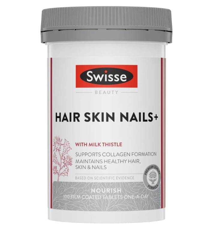 Swisse Beauty Hair Skin Nails + supports healthy hair, radiant skin & strong nails.