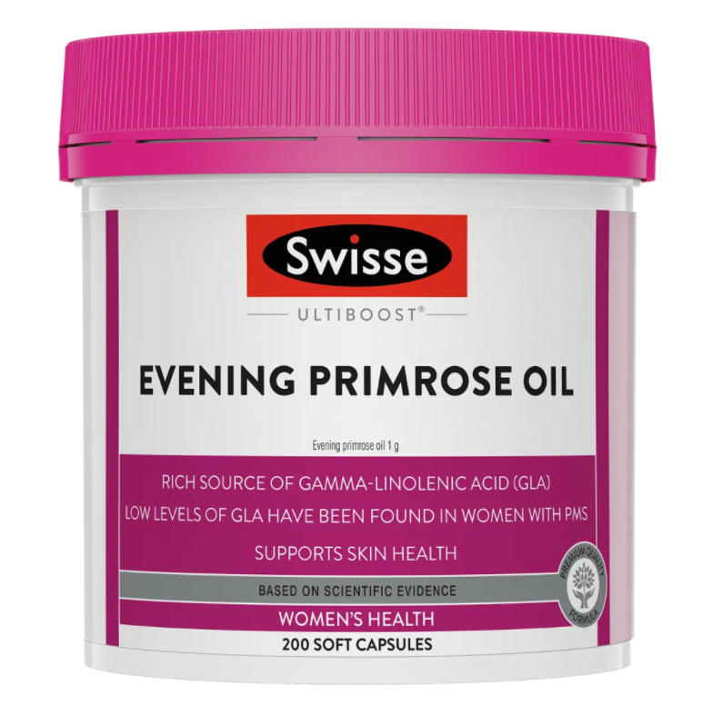 Swisse Ultiboost Evening Primrose Oil helps to relief inflammation, support health and wellbeing, and maintain healthy skin. It is a rich source of gamma linolenic acid (GLA), a long-chain fatty acid that research suggests may be low in women with premenstrual syndrome (PMS).