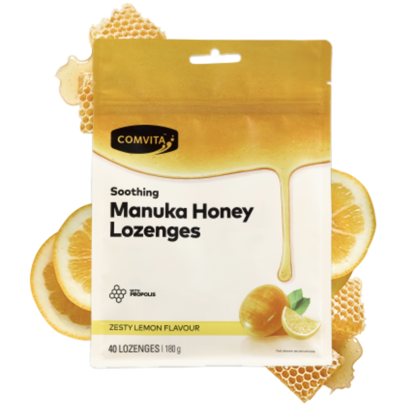 Comvita® Manuka Honey Lozenges with Propolis combine the soothing qualities of UMF™ Manuka Honey with the power of Propolis. Zesty Lemon flavour.