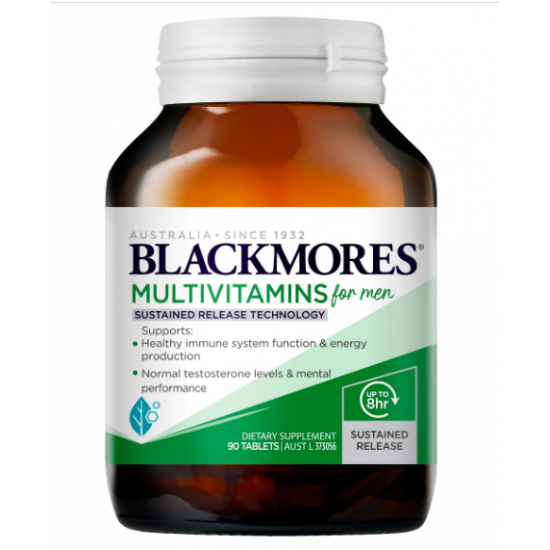Blackmores® Multivitamins for Men with Sustained Release Technology is a tailormade blend of essential vitamins & minerals for men. It is formulated to support immune system function and energy production. This convenient one-a-day multivitamin supports testosterone levels and mental performance and is designed with a unique sustained release technology that release nutrients to the body gradually throughout the day.
